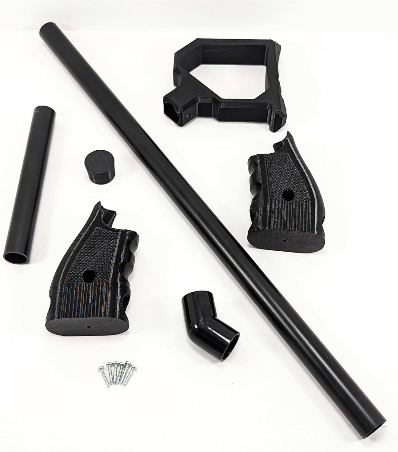 3D Cabin virtual reality adjustable stock compatible with oculus / meta quest; version 1, version 2 and pro. Simply assemble the kit by slotting it together and securing it with the supplied fixings into the locating holes. Thread the wrist strap through the base of the controller mounts and slide the controllers in. The controllers are held in securely via a friction push fit for even the most intense gaming. Enhance your FPS gaming experience by making it more realistic and improving skill. The stock can be assembled in left or right hand variants for any type of player. The left and right hand controller grips can be adjusted in distance for different sized people / length arms. Controller mounts have integrated finger grooves for the most comfortable grip. Designed in such a way that your headset will not collide with the stock. Kit includes; 2 tubes, 1 stock, left controller mount, right controller mount, end cap, 45 degree connector, 6 fixings. Stock kit only, VR controller or headset not included.