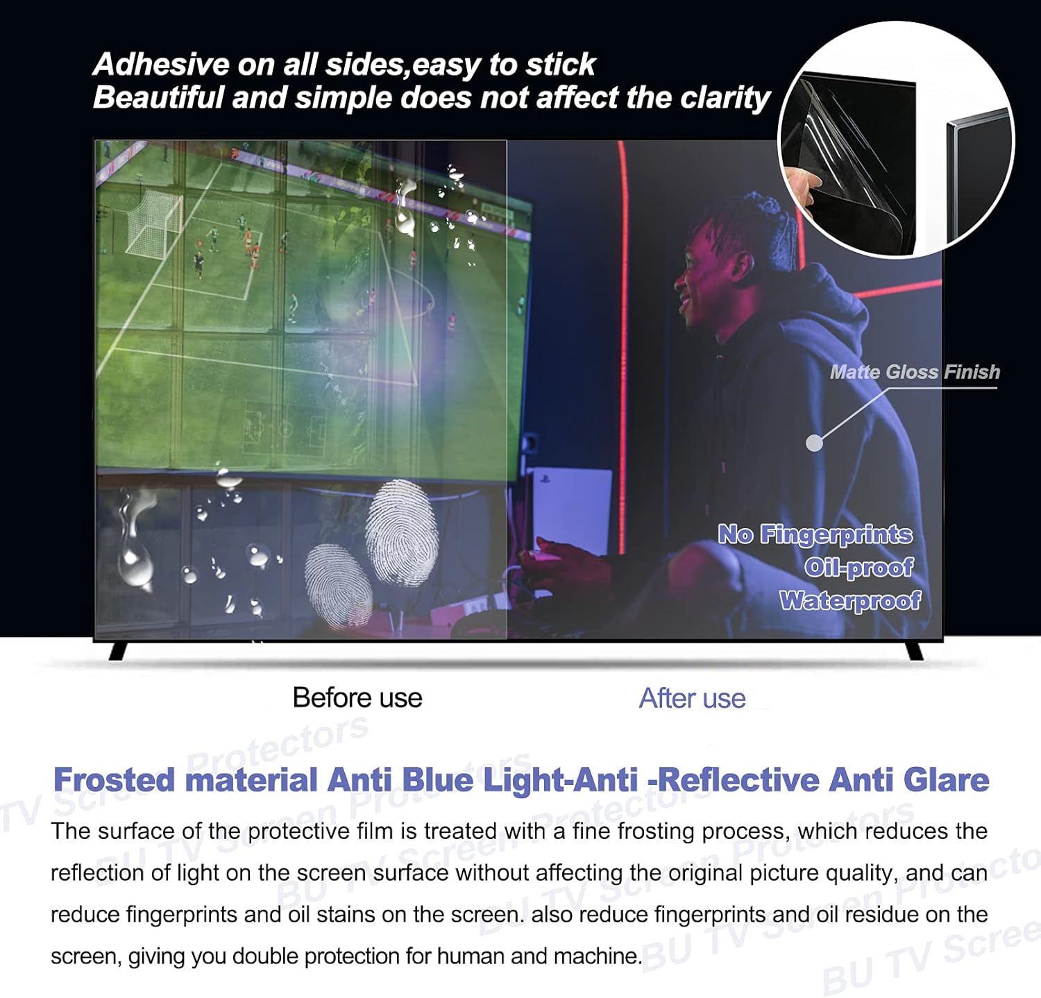 MATTE SURFACE FILM: The matte surface will anti-glare and prevents reflection, scratch resistant. Fits Sharp, Sony, Samsung, Hisense, LG etc lcd, led, 4k oled & qled hdtv displays and curved screen.