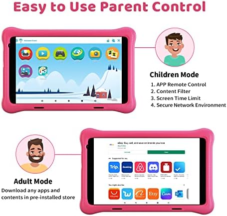 8 inch Tablet for Kids, Android 11 Kids Tablet with Parental Control, Kidoz Installed, 4000 mAh, HD Display, 32GB, Dual Camera, WiFi, Bluetooth, Children Learnig Tablet with Kid-Proof Case, Pink