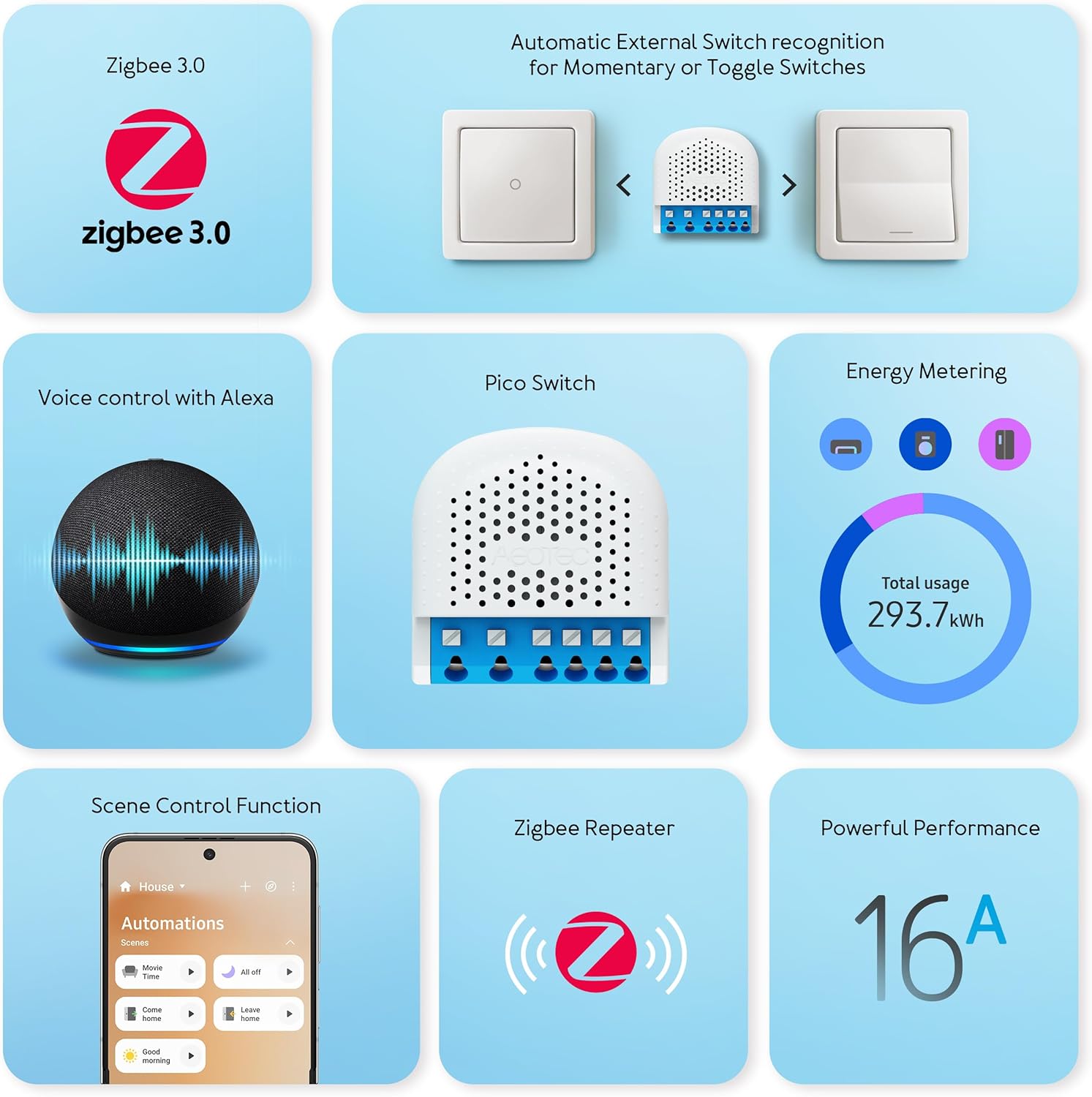 Improve the reliability of your smart home. The Pico Switch acts as a repeater to forward Zigbee commands from other devices up to 100 m away.