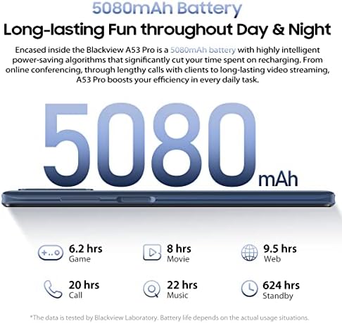 ★【5080mAh Battery, Long-lasting Fun Throughout Day & Night】Encased inside the Blackview A53 Pro is a 5080mAh battery with highly intelligent power-saving algorithms that significantly cut your time spent on recharging. From online conferencing, through lengthy calls with clients to long-lasting video streaming, A53 Pro boosts your efficiency in every daily task.