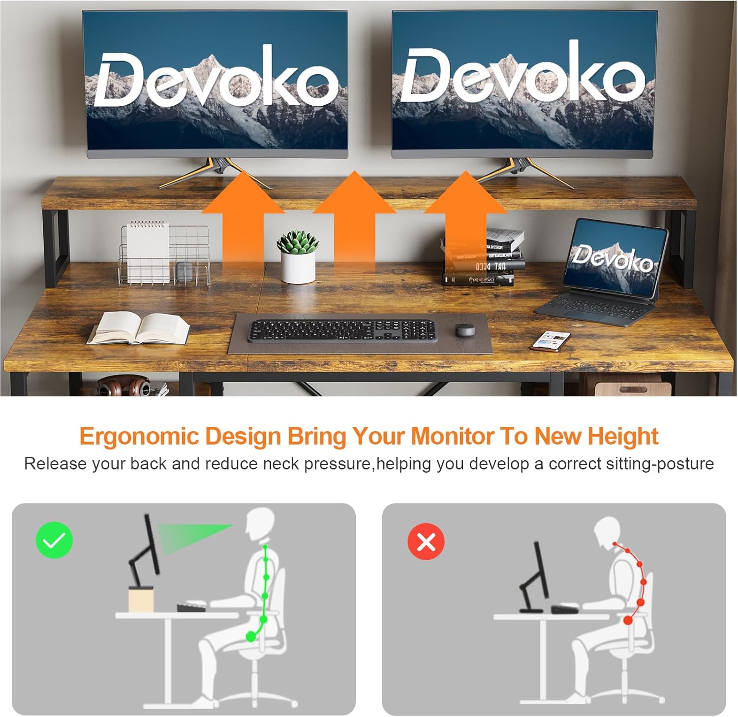 【Computer Desk With Monitor Stand】: Our desks are equipped with a monitor stand that allows you to place up to 2 monitors; the monitor stand easily raises the screen to eye level, effectively relieving pressure on the neck and back.