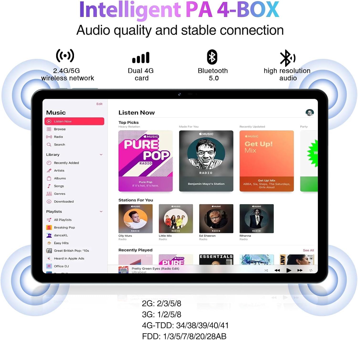 【4 Smart PA】 DOOGEE T30S Tablet is equipped with four speakers, and each speaker is equipped with a SmartPA system. Whether you’re working, studying, or traveling, the DOOGEE T30S tablet offers you stunning sound effects. Adaptable to high-resolution audio standards to ensure the sound you hear is close to natural. p3.5mm AUX headphone jack and 1 SD card port.