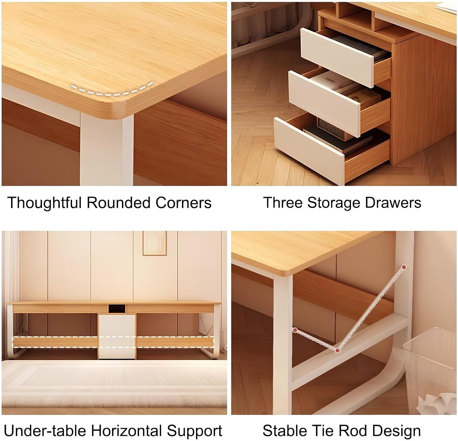 3. Three large drawers offer ample storage for a clutter-free workspace