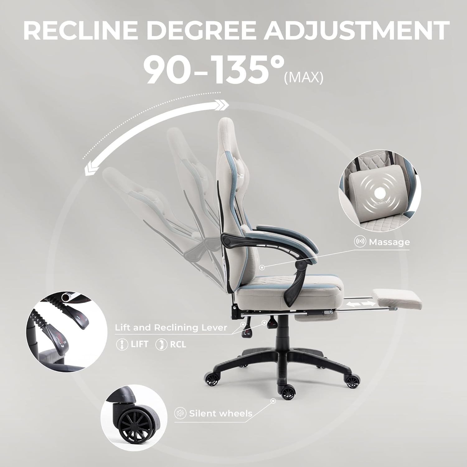 [Meeting Daily Needs] Users can recline up to 135 degrees on the backrest, making it suitable for various scenarios such as gaming, working, and relaxation. The lumbar pillow and headrest provide much-needed support, alleviating the strain on the lower back and neck during extended periods of sitting.