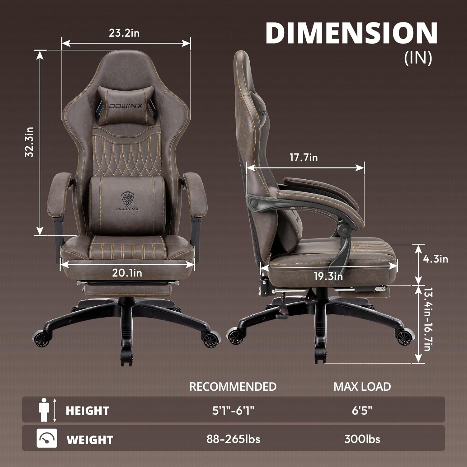 POCKETED SPRINGS CUSHION: Dowinx gaming chair incorporates independently pocketed springs, a special feature in gaming chair cushion. These springs effectively distribute body weight, delivering optimal support and relieving lower back pressure. The design also includes air holes to boost the gaming chair spring system’s load capacity while minimizing noise.