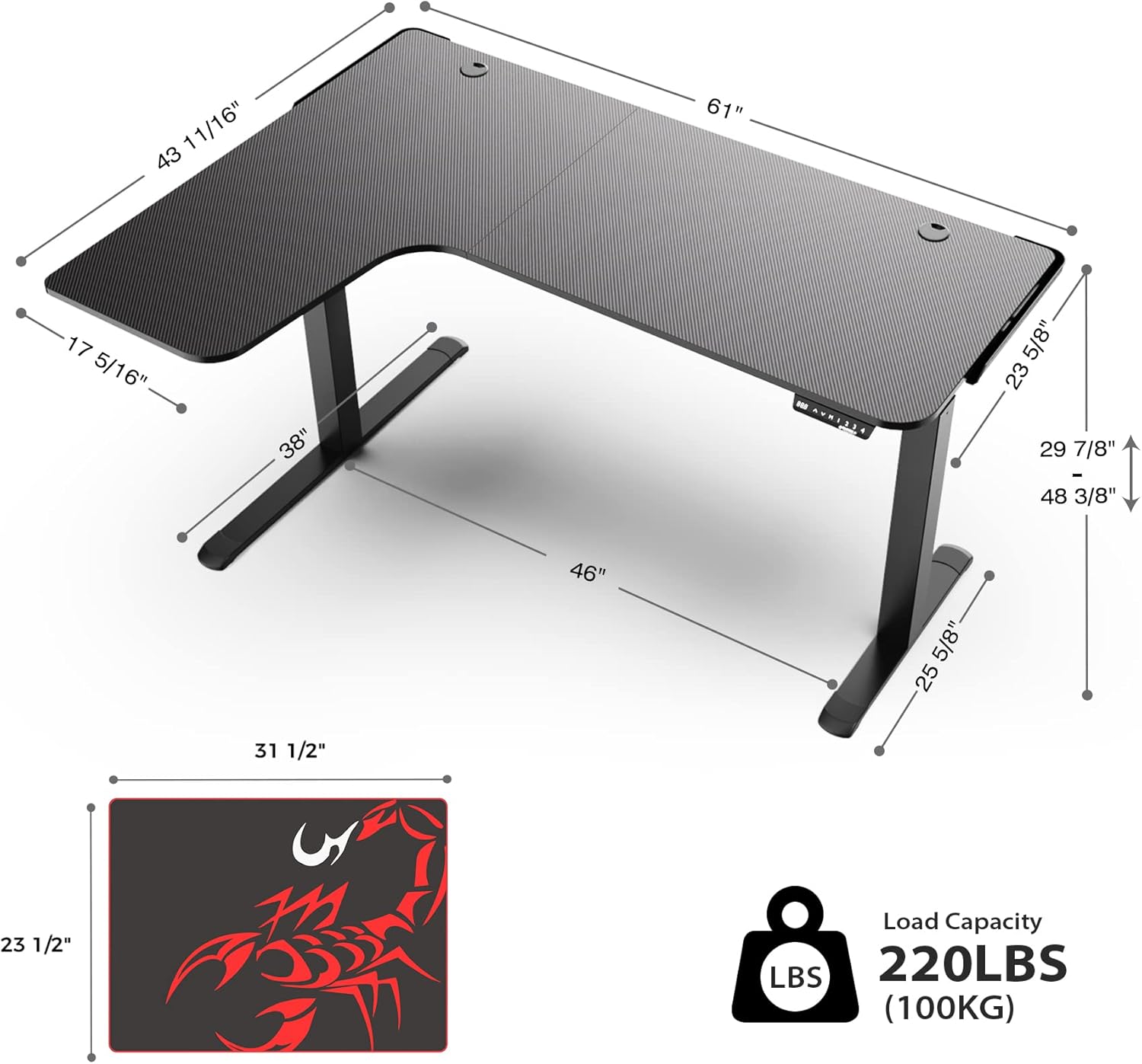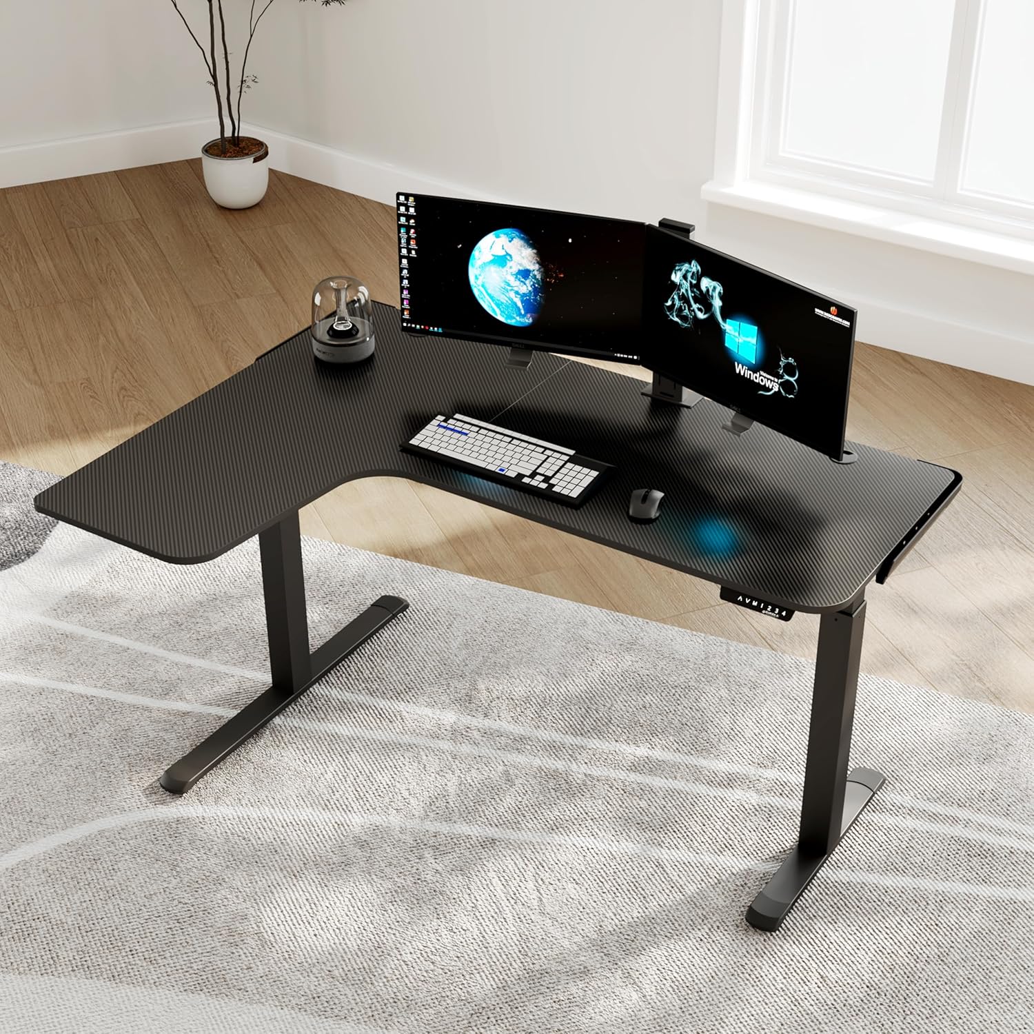 Space Saving & Ample Leg Room: L shaped desktop design is your space-saver by using the corner of your home office very effectively. Meanwhile, this corner electric adjustable desk provides plenty of leg room underneath for satisfying your storage need.