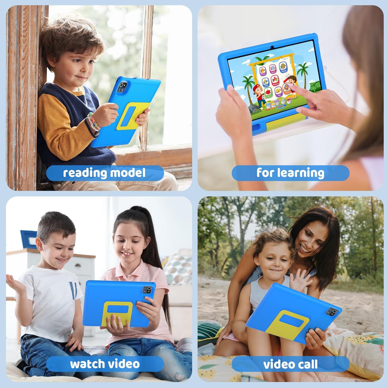 【High definition touch screen+dual cameras】This kids tablet 10 inch features a screen resolution of 1280*800 and is equipped with a high-definition LCD display, making it suitable for playing and watching movies as well as reading e-books.This kids tablet comes with a 2-megapixel front camera and a 5-megapixel rear camera, offering high-definition configuration that allows kids to make video calls with family and friends at any time and capture their daily life moments using the kids tablet. It also comes with WiFi, Bluetooth, and a Type-C interface.