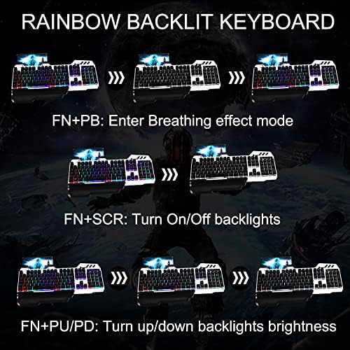 PC Gaming Mouse with backlight: The mechanical gaming mouse features intelligent colorful rainbow breathing lights, design back and go-ahead functions of the left side button up to 4-adjustable Dpi levels (800-1200-2400-3200) and non-slip design, provide accurate positioning and responsiveness, the gaming experience is more vivid