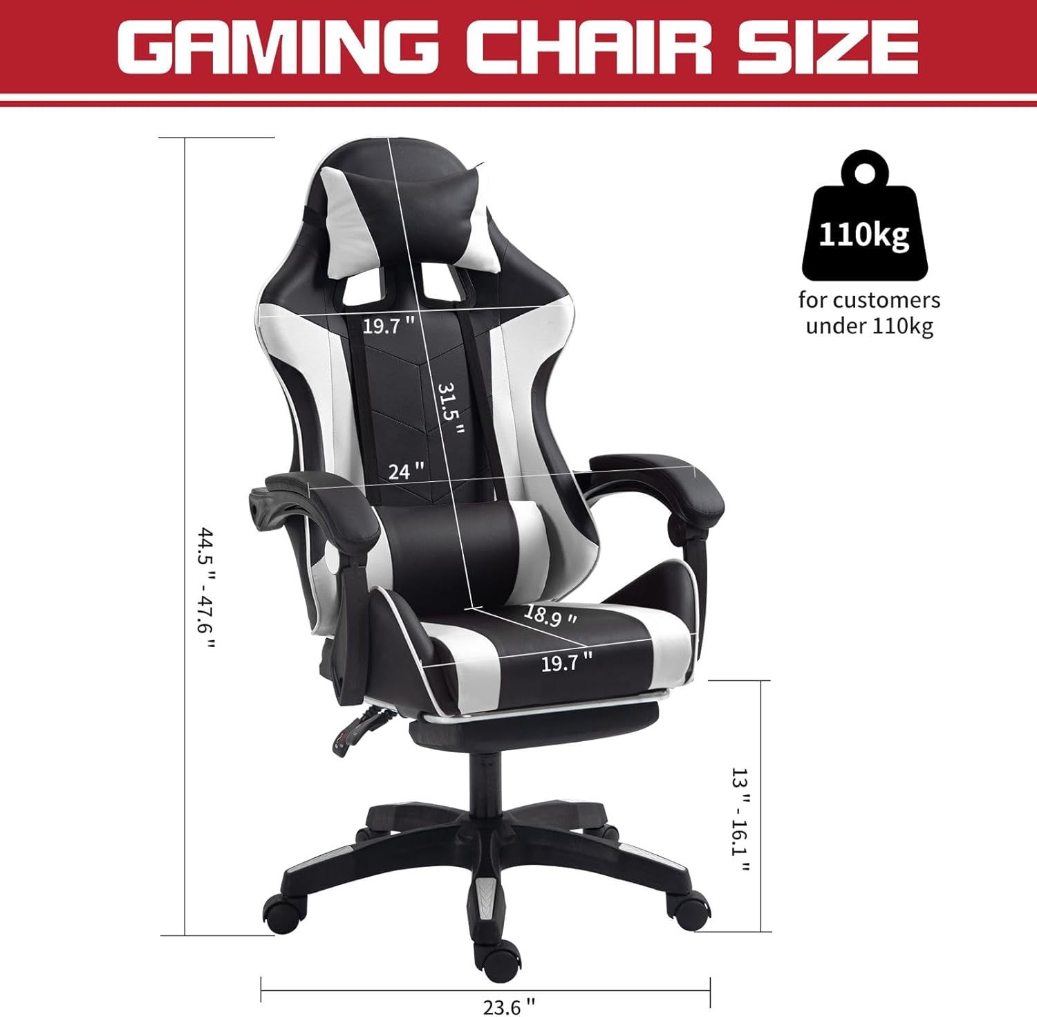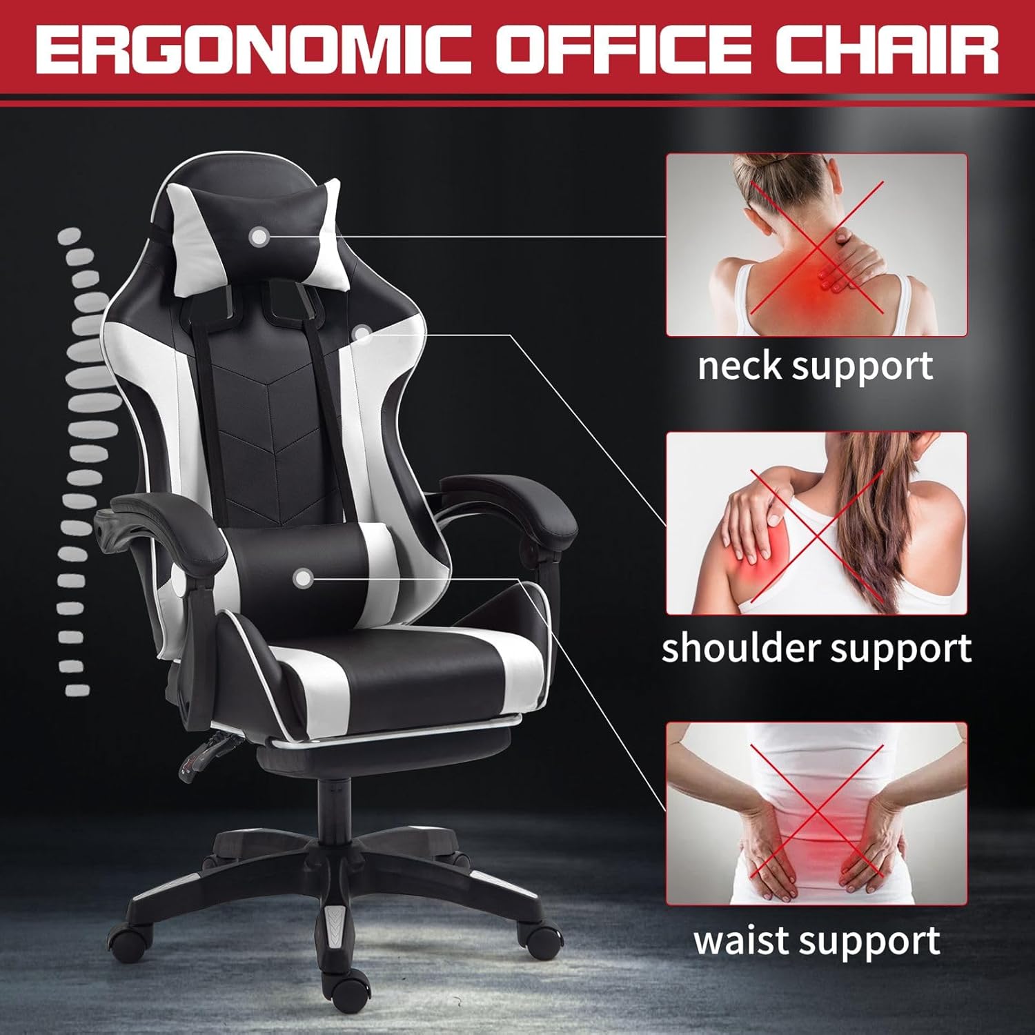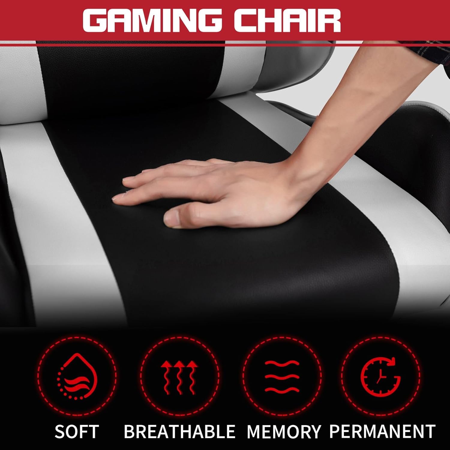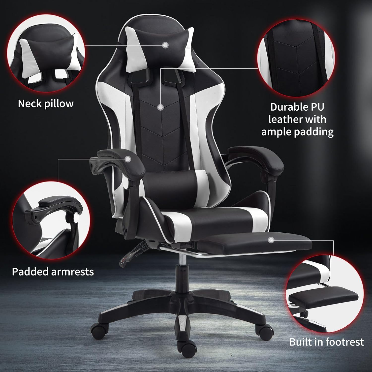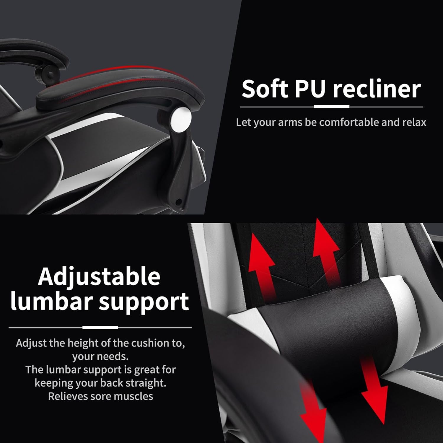 Stylish: Two-tone faux leather upholstery – this games chair brings style into your gaming room and work space.