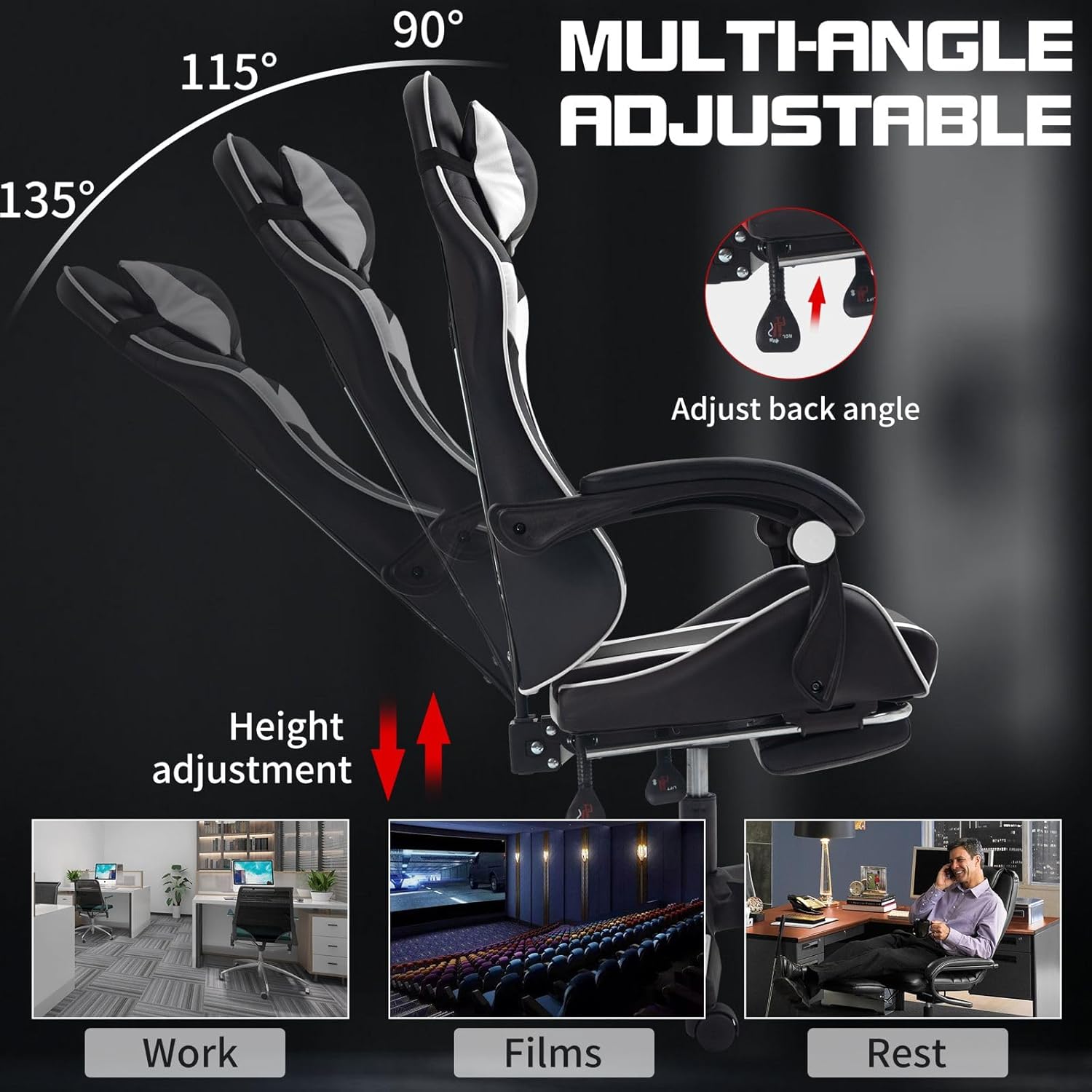 * SIT BACK & PUT YOUR FEET UP (COMFORTABLE FOOTREST) : The chair reclines up to 135 degrees, so you can relax wherever you are – at home or at work. With the built-in retractable foot rest, you can lean back and put your feet up whenever you like.