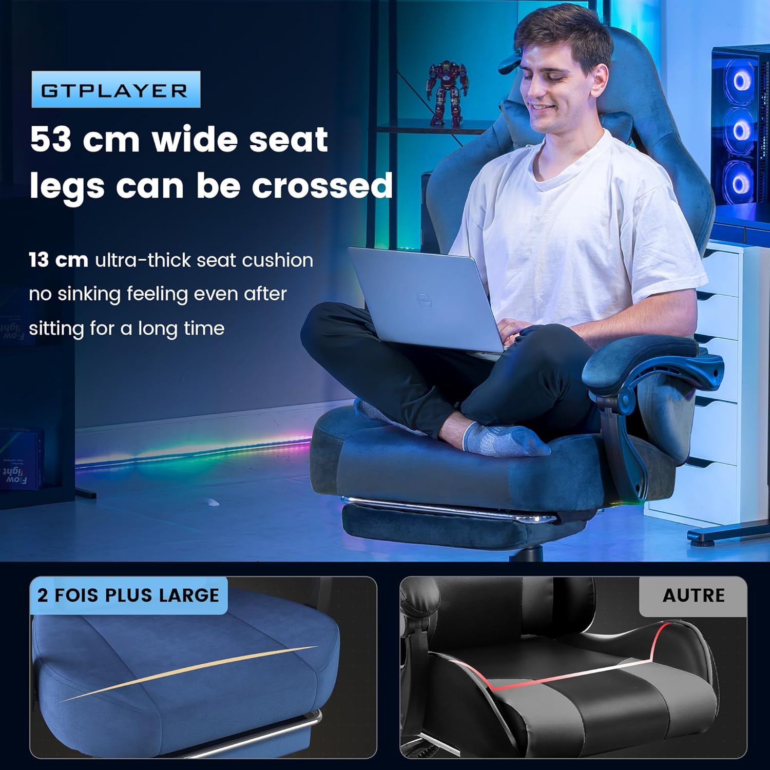 GTPLAYER Fabric Gaming Chair, Ergonomic Computer Chair with Footrest and Lumbar Support Height Adjustable Home Office Chair with 360°-Swivel Seat and Headrest