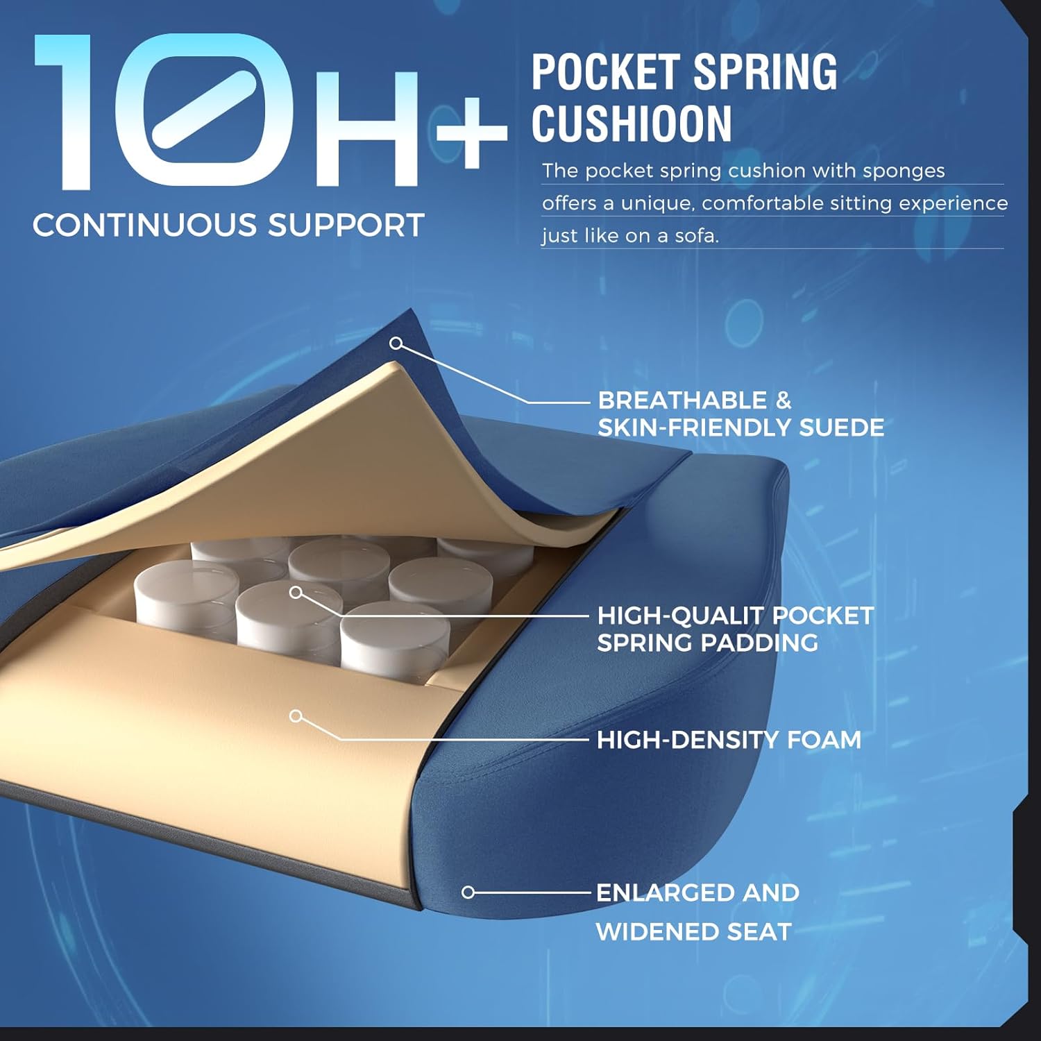 【Sofa-like Sitting Experience】: Would you be comfortable sitting on an overnight baguette? Most cheap computer chairs use recycled foam that gradually flattens over time. Not ours. We’ve packed the seat with high-density cold cure foam, complemented by sofa-like pocket springs underneath, ensuring resilient and supportive comfort. The moment you take a seat, you’ll feel the difference.