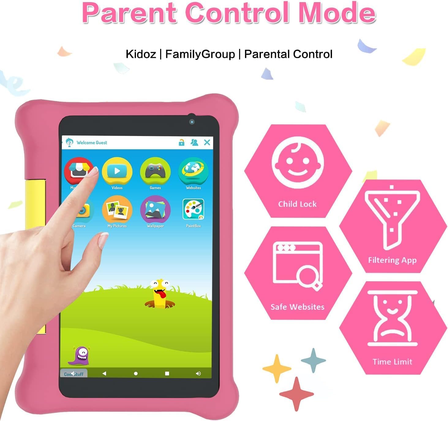 Age-appropriate Contents: Preloaded with the Kidoz app and FamilyGroup Parental Control system, these parental control helpers can add or block apps, filter contents, set screen time, and even monitor activities to protect against your kids accessing to any unsafe contents.