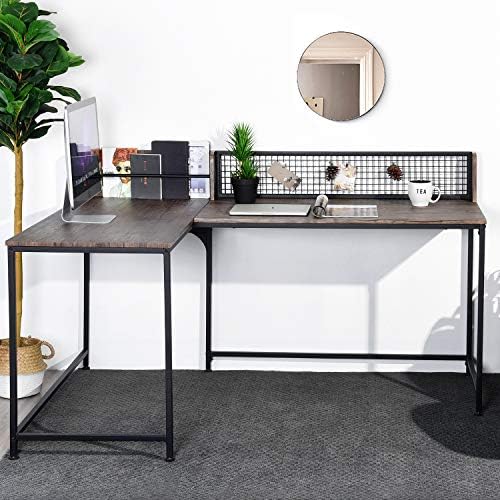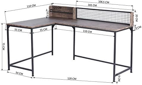 Space-Efficient: L-shaped computer desk, perfect for home office, maximizing surface area and room space. Durable & Modern: Sturdy metal frame with MDF surface and wood-effect veneer.
