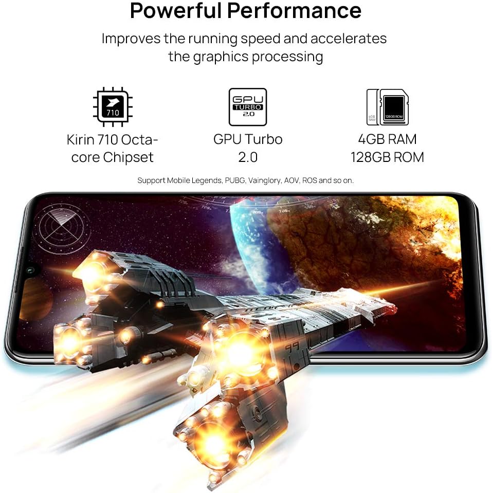“Advanced Performance: The Kirin 710 octa-core chipset efficiently improves the running speed and satisfy all your daily needs for working and studying. The revolutionary graphic processing technology powered by GPU Turbo 2.0, enhances performance for a faster, smoother and more powerful gaming experience. “