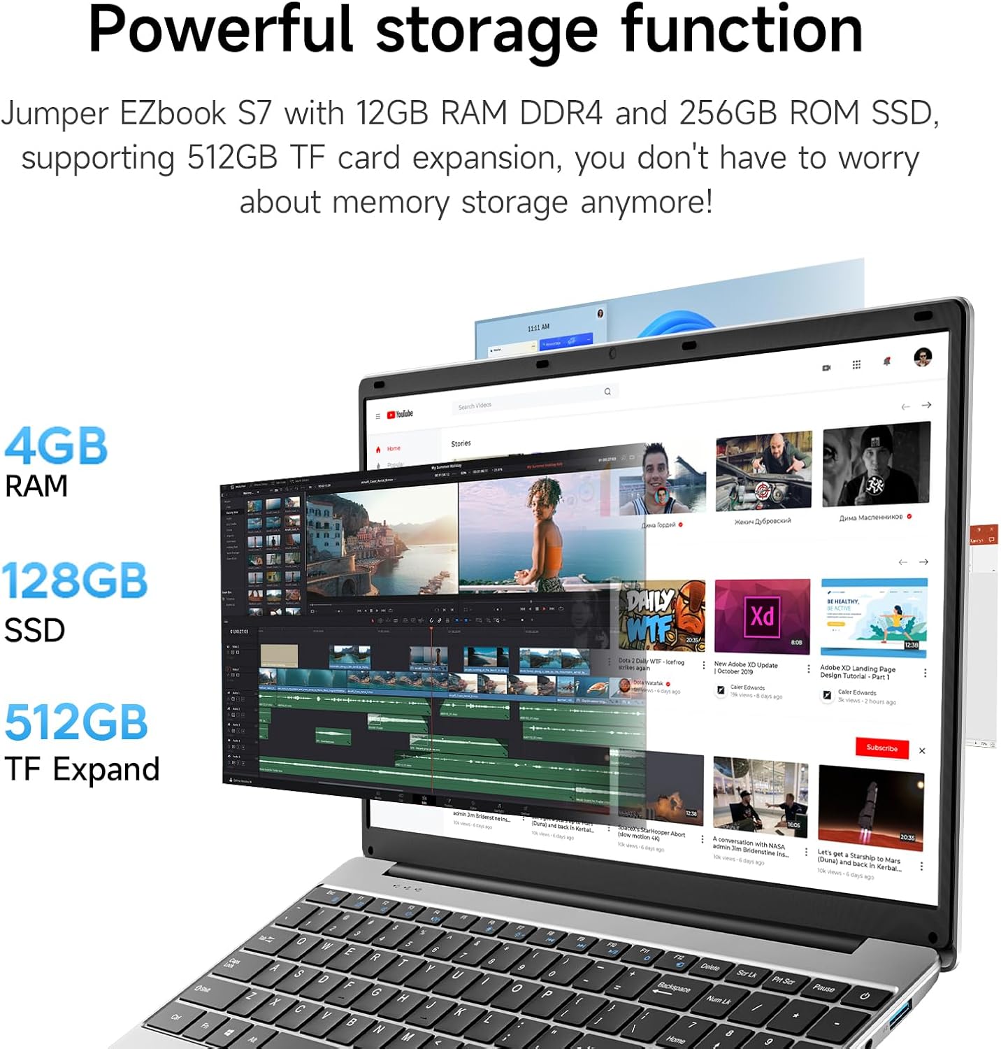【4GB+128GB RAM + 512 TF Card】 The S7-Hi laptop comes with 4GB of high-speed DDR4 RAM, 128GB of SSD storage, and 512GB of TF card expansion, giving you plenty of room to run a variety of programmes and applications smoothly.
