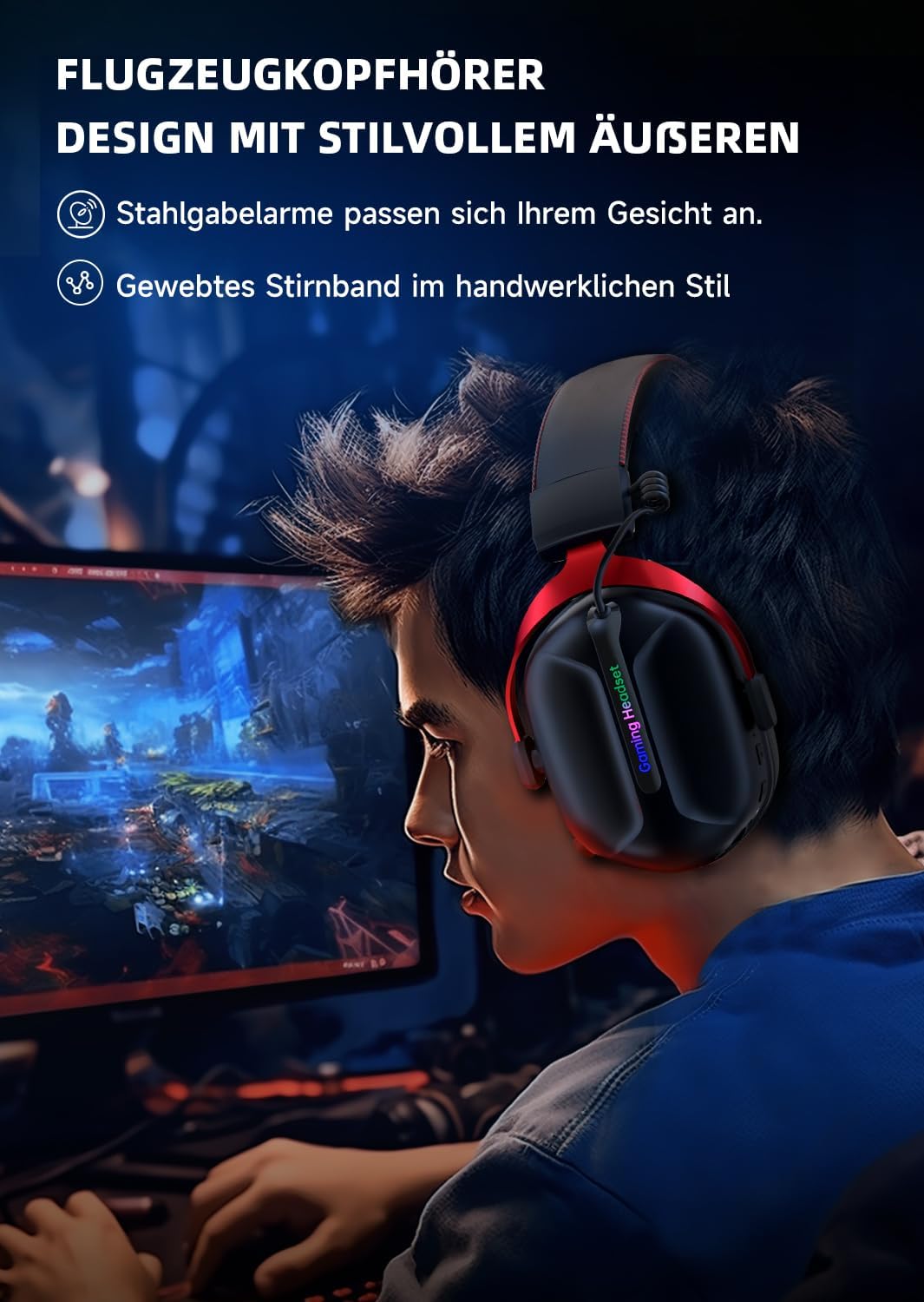 【WONDERFUL SURROUND SOUND】: Bluetooth gaming headset is equipped with a 50MM high-density audio driver, using PET technology, which improves the sound quality by 30% compared to other gaming headsets, and has negligible low-latency wireless audio transmission of less than 20MS, and it brings you more accurate and timely environmental sounds and positional sounds in the game, you can truly feel the real-time shock of the sound in every frame of the game, and you will not miss any sound details.