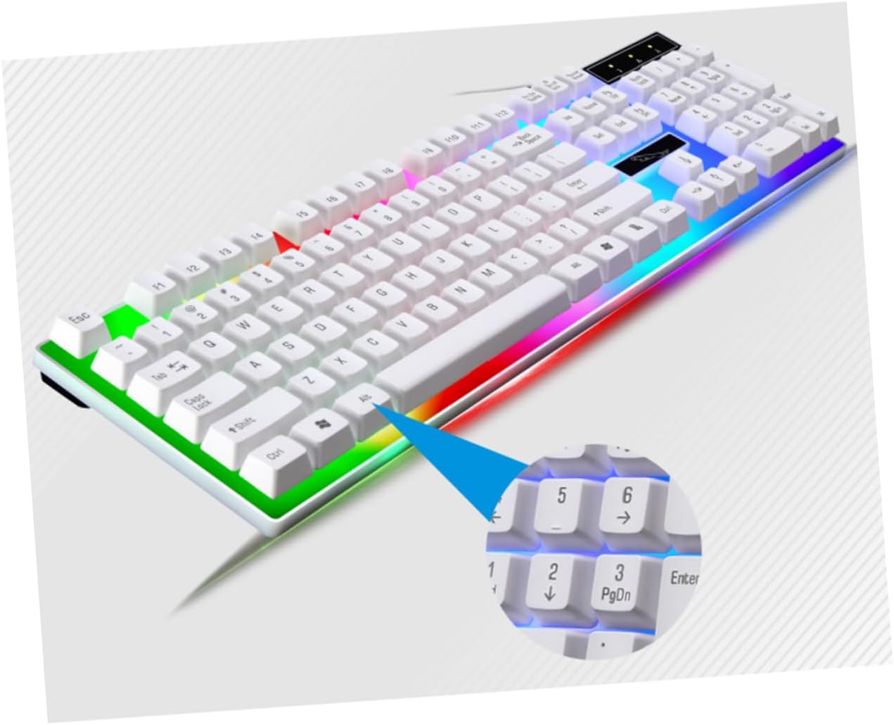 Mechanical feeling keyboard: draining holes on the bottom of keyboard, prevent liquid from damaging keyboard.