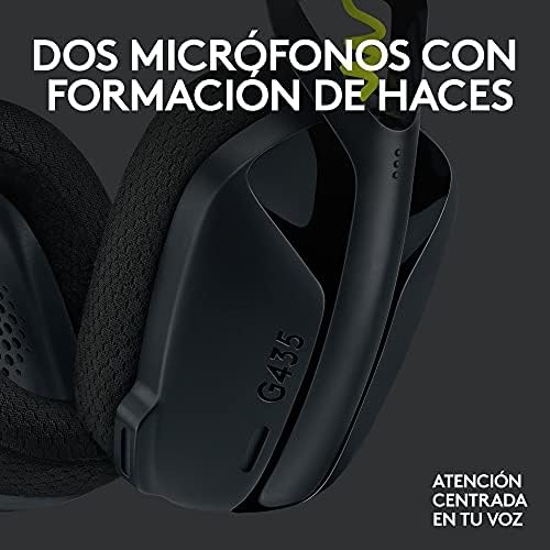 Logitech G435 LIGHTSPEED & Bluetooth Wireless Gaming Headset, Ultra Lightweight 165g over-ear headphones, built-in mics, 18h battery, compatible with Dolby Atmos, PC, PS4, PS5, Nintendo Switch – Black