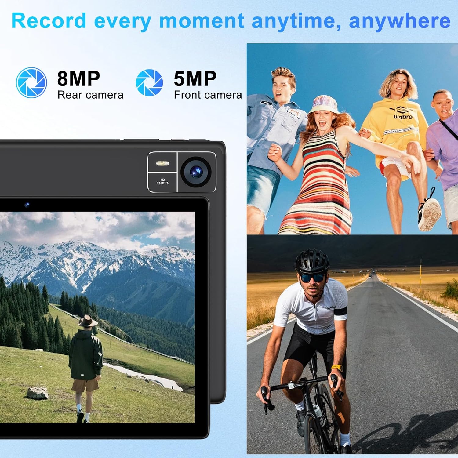 【Double Camera + Video Call】Front 5 MP camera + rear 8 MP camera, to take moving photos of every moment. The S10’s camera has several camera modes, and you can freely edit photos and add various themed texts.With 5GWiFi, video calls are unhindered.The tablet also has a face unlock feature that provides quick access to the tablet system