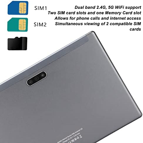 DUAL CAMERA: 5G tablet comes with HD dual camera, 2MP rear camera and 2MP front camera, so you can take great photos or make clear video calls. It also supports Bluetooth, GPS and other functions to meet work and study needs.
