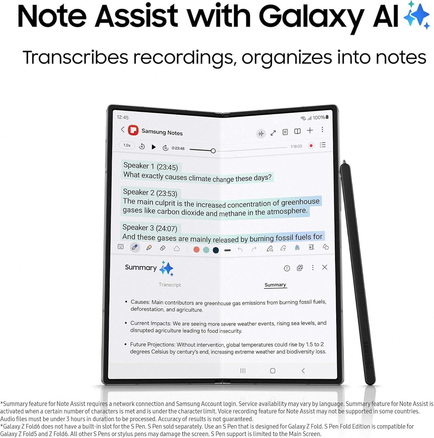Galaxy AI: Experience the future of mobile technology with the Galaxy Z Fold6, put PC-Like Power in your pocket, Galaxy Z Fold6 now Super Charged with Galaxy AI. Thinner & lighter with a pocket-worthy silhouette & an even brighter, awe inspiring fold out screen.¹ ²