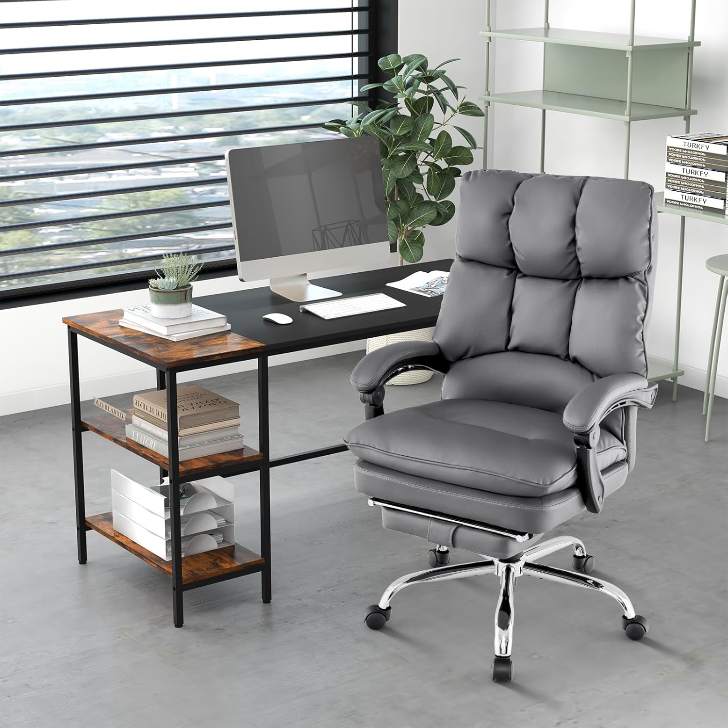 RETRACTABLE FOOTREST & SWIVEL WHEELS: When you’re tired, you can spread out the footrest to make this office chair become a deck chair for a short rest. Also, the 360° nylon wheels are easy to move with less noiseless and protects the floor from scratches.