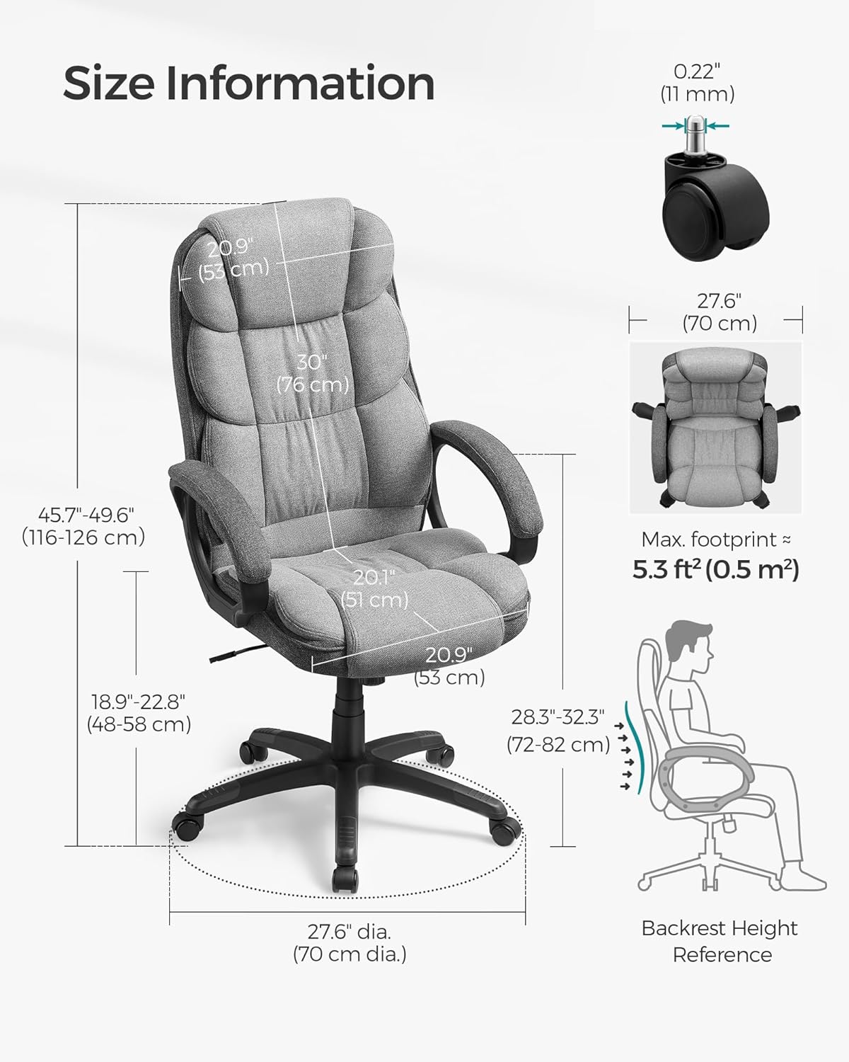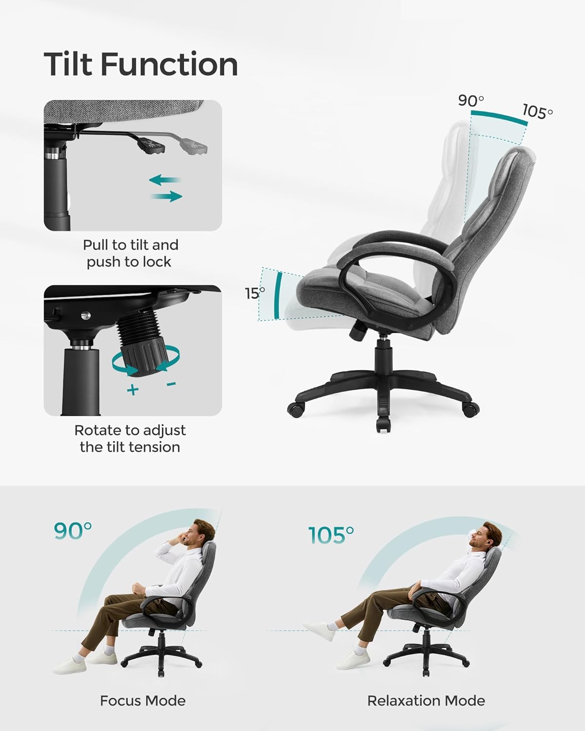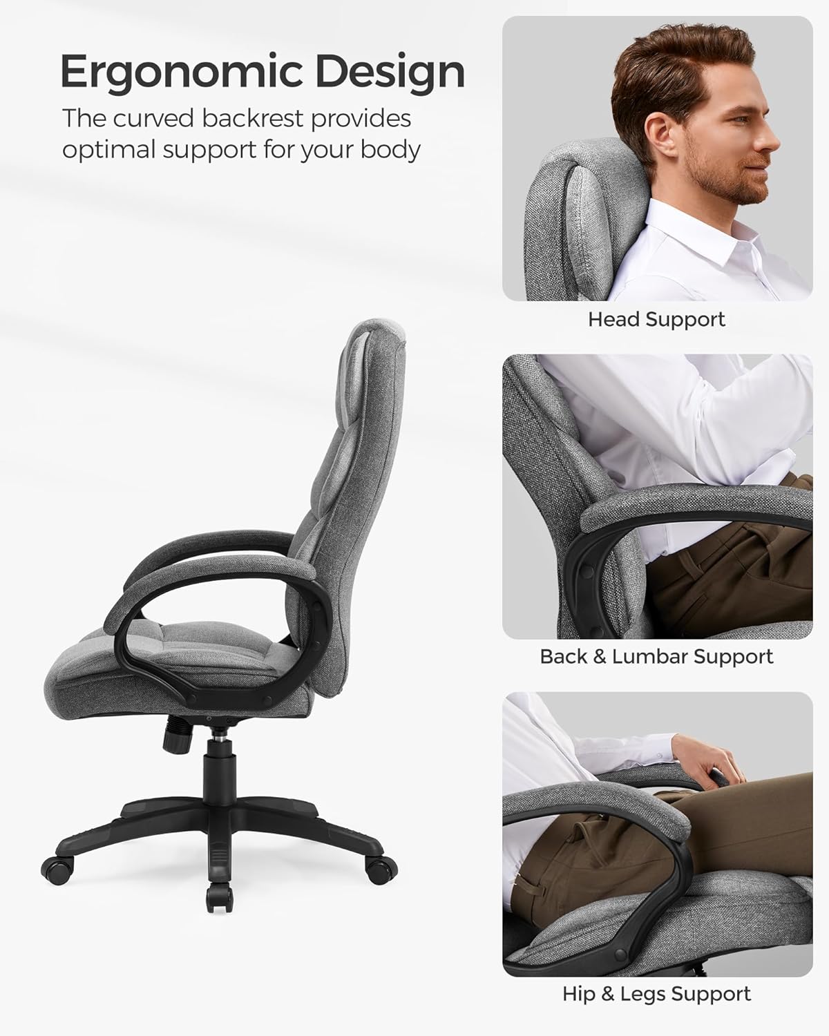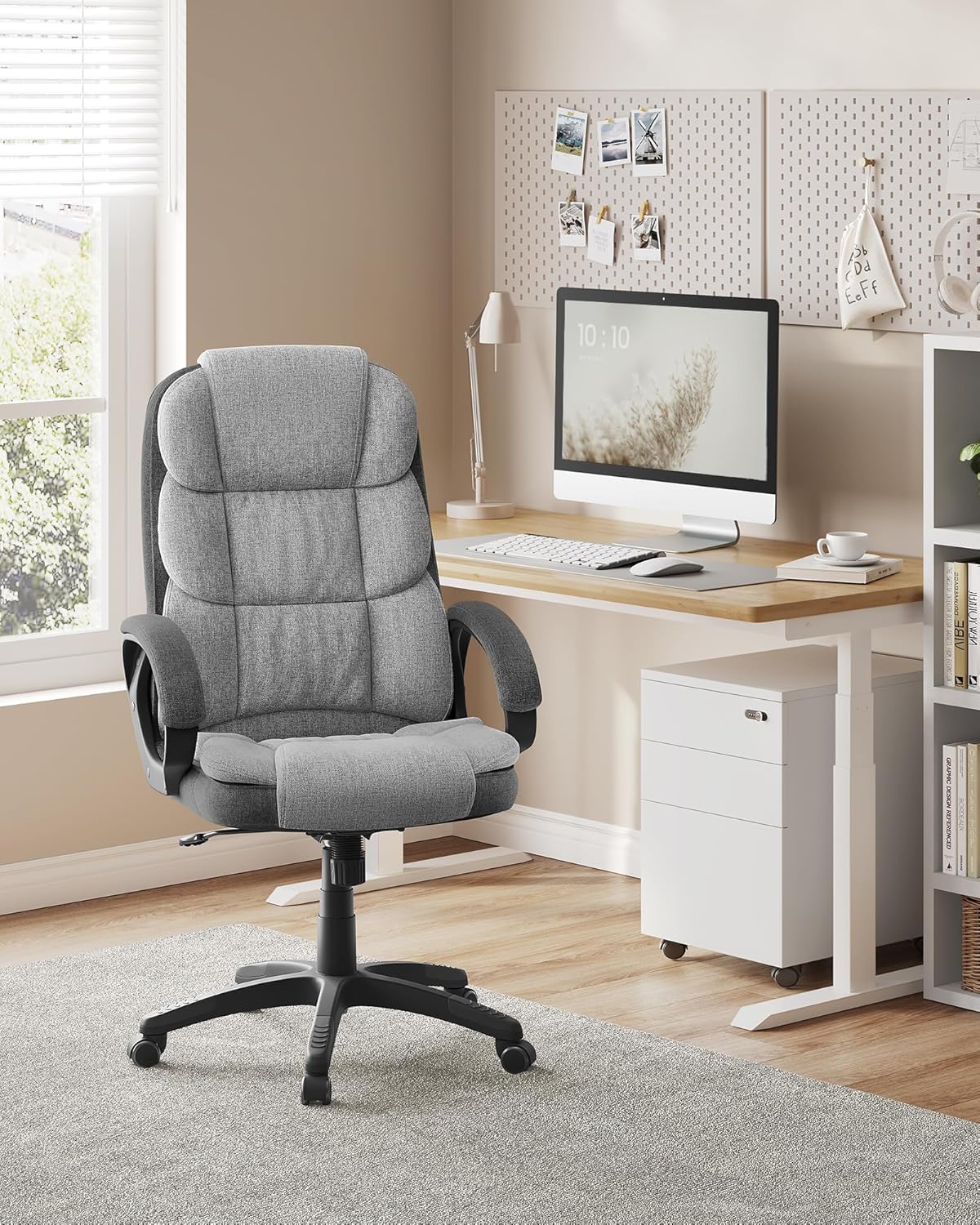 [Enhanced Quality] The linen-look fabric surface of this office chair is breathable and pleasant to the touch. The backrest and armrests are upholstered with thick elastic foam, providing comfortable seating and resisting deformation