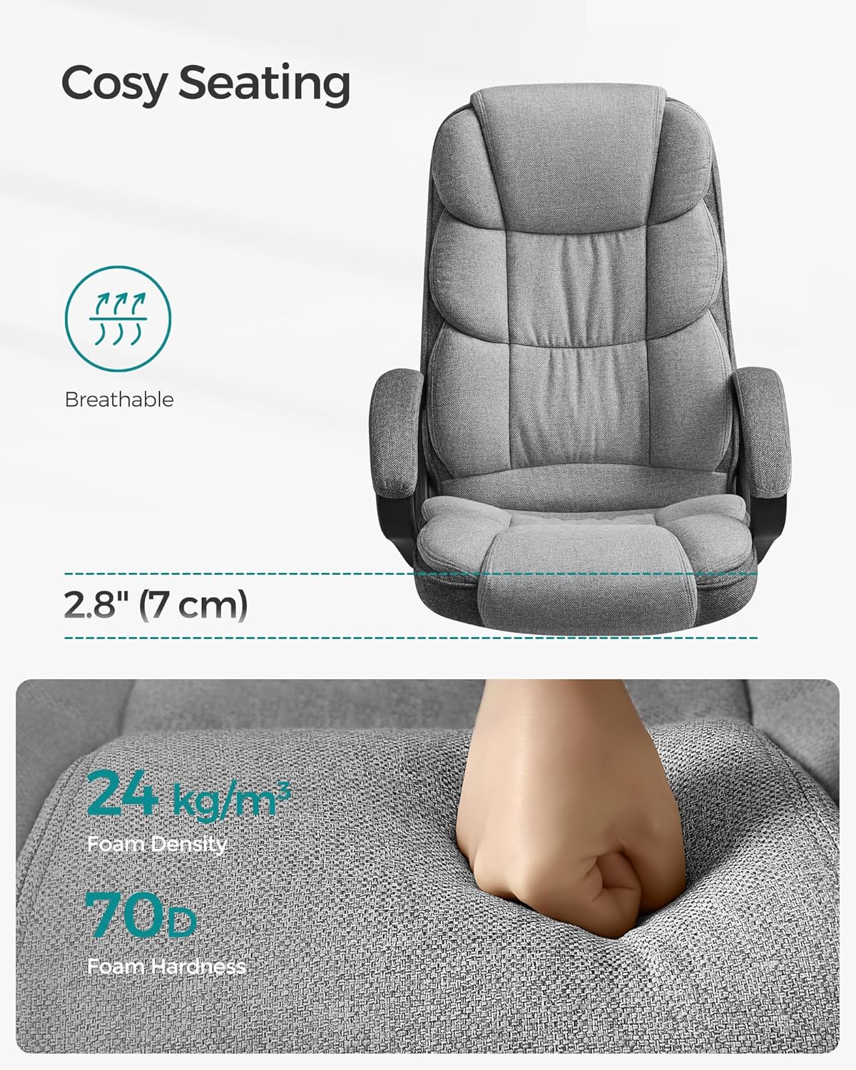[Enhanced Quality] The linen-look fabric surface of this office chair is breathable and pleasant to the touch. The backrest and armrests are upholstered with thick elastic foam, providing comfortable seating and resisting deformation