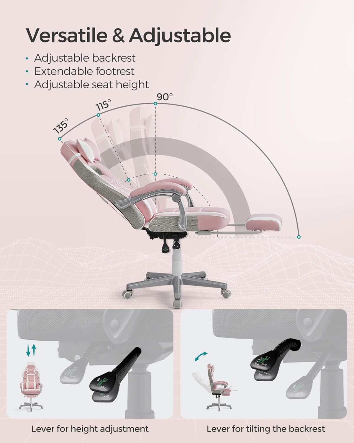 [Start a Productive Day] With a height adjustable range of 47-57 cm and high back tilting angle of 90°-135°, this office chair allows you to find your proper sitting position and keep working efficiently