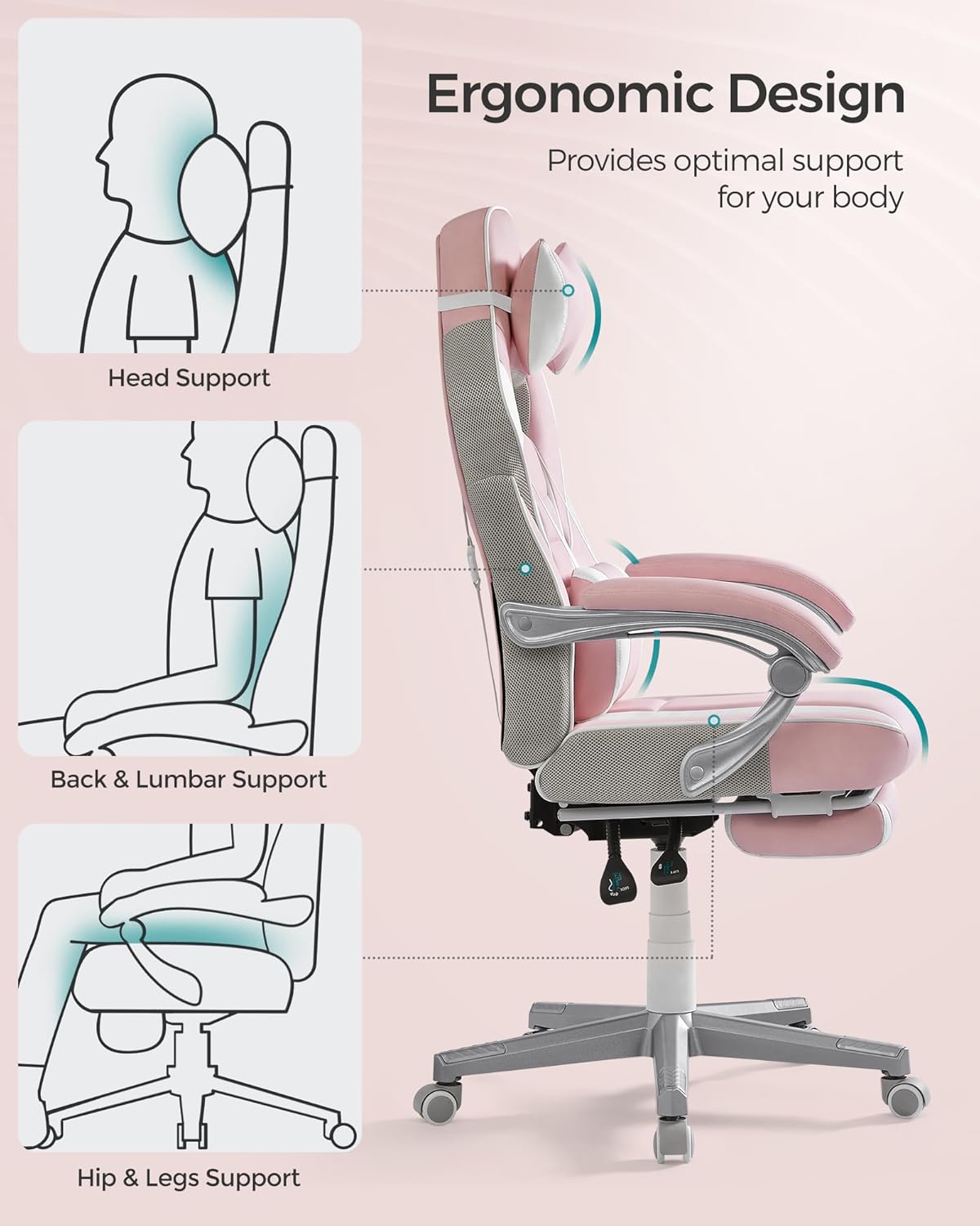 The extendable footrest alleviates pressure on your legs, keeping your body relaxed and free from stress and fatigue.
