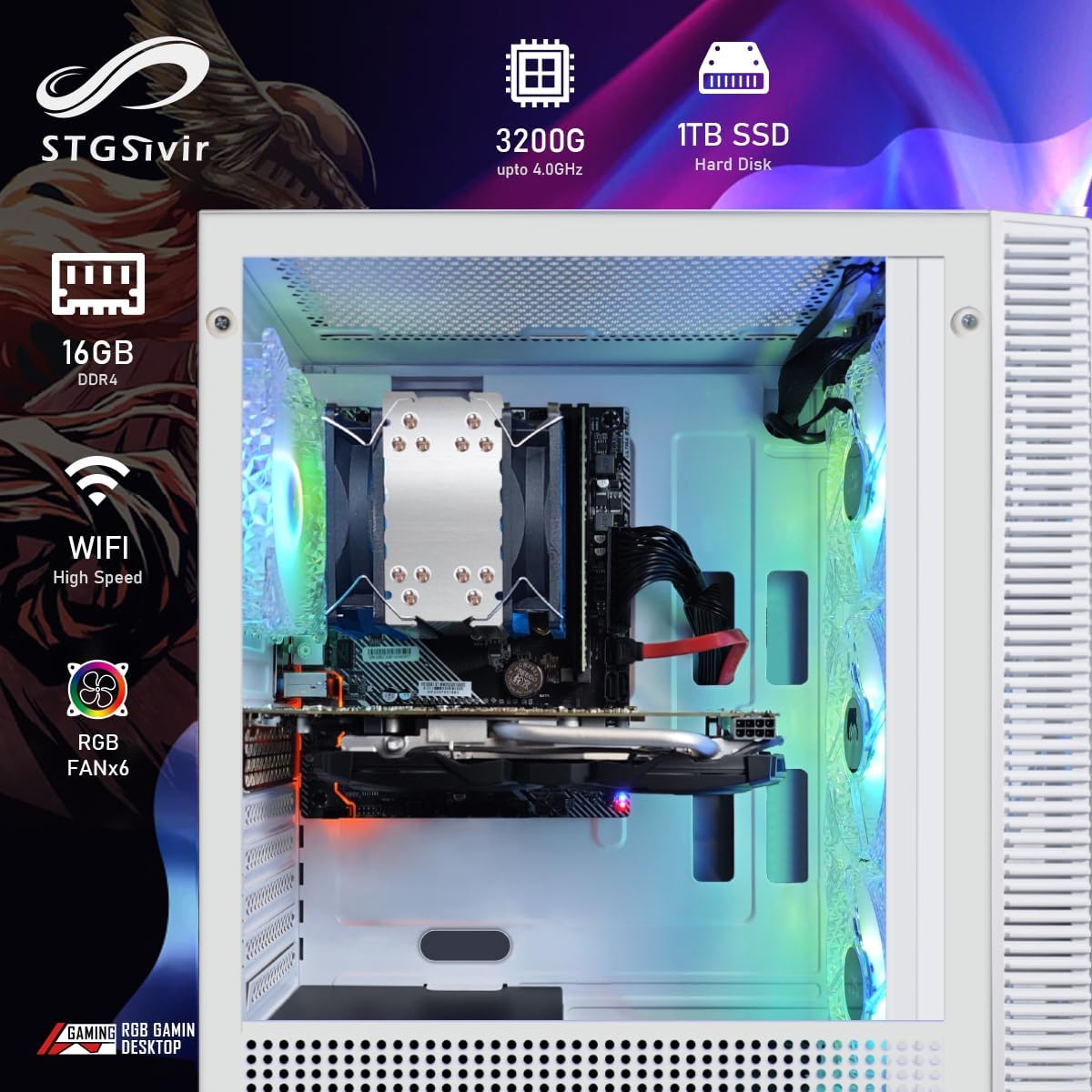 Blazing-fast processing: Powered by an AMD Ryzen 3 3200G 3.6GHz up to 4.0GHz-4 core 4 threads CPU processor and boasting 16GB DDR4 of RAM, this gaming desktop ensures blazing-fast performance, allowing you to effortlessly multitask and run applications demanding with ease.