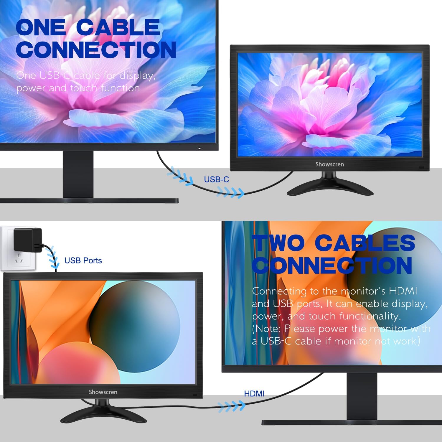【Multi-Functional Connectivity Ports】: This portable touch screen monitor for laptop is equipped with HDMI/USB-A/dual USB-C (requires USB-C 3.1 support), compatible with PCs, laptops, Xbox, Raspberry Pi, smartphones, and PS4/5. It can also serve as a display for mini PCs, computer sticks, or TV boxes. Plug and play. Built-in dual speakers provide an enhanced audio experience without the need for external devices.