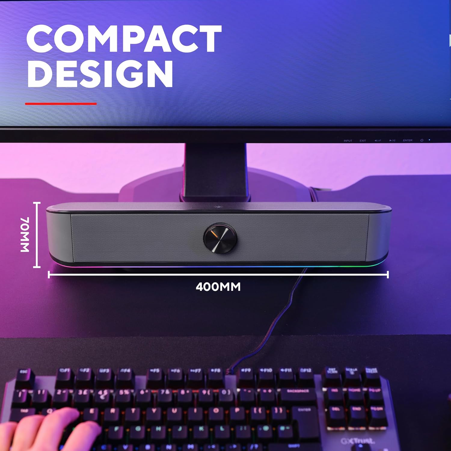 LIGHT SHOW – A PC soundbar with a light bar; the RGB on the bottom of the Rhox is adjustable in 6 different light modes, so party hard!