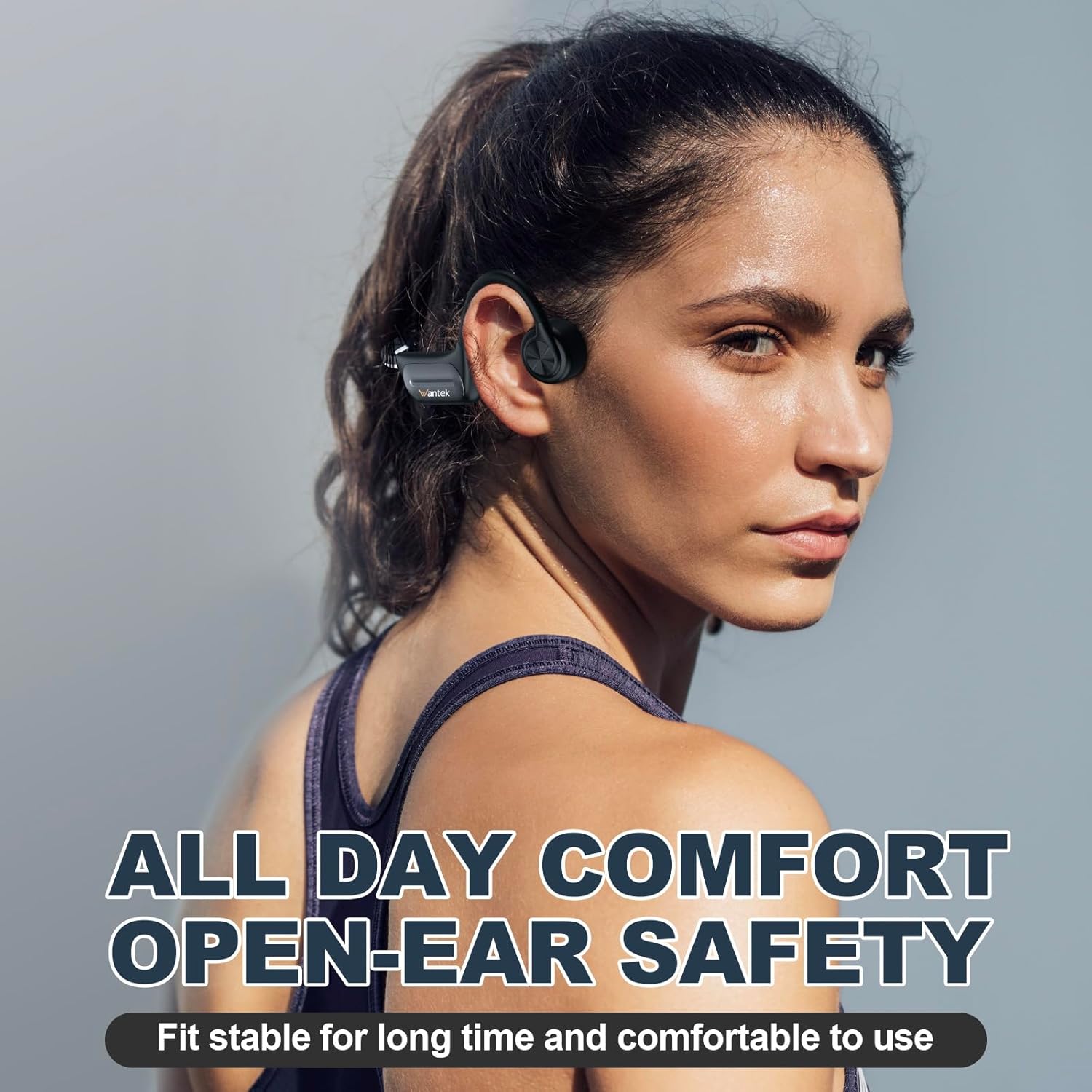 [Open-Ear Headphone Design -Comfort & Safety] Wantek bone conduction headphones designed for sports! Say goodbye to discomfort with in-ear, heavy, and wired headsets with our bud-free design. this open ear headphone not only has premium sound quality but also comfort for wear and safety connection.