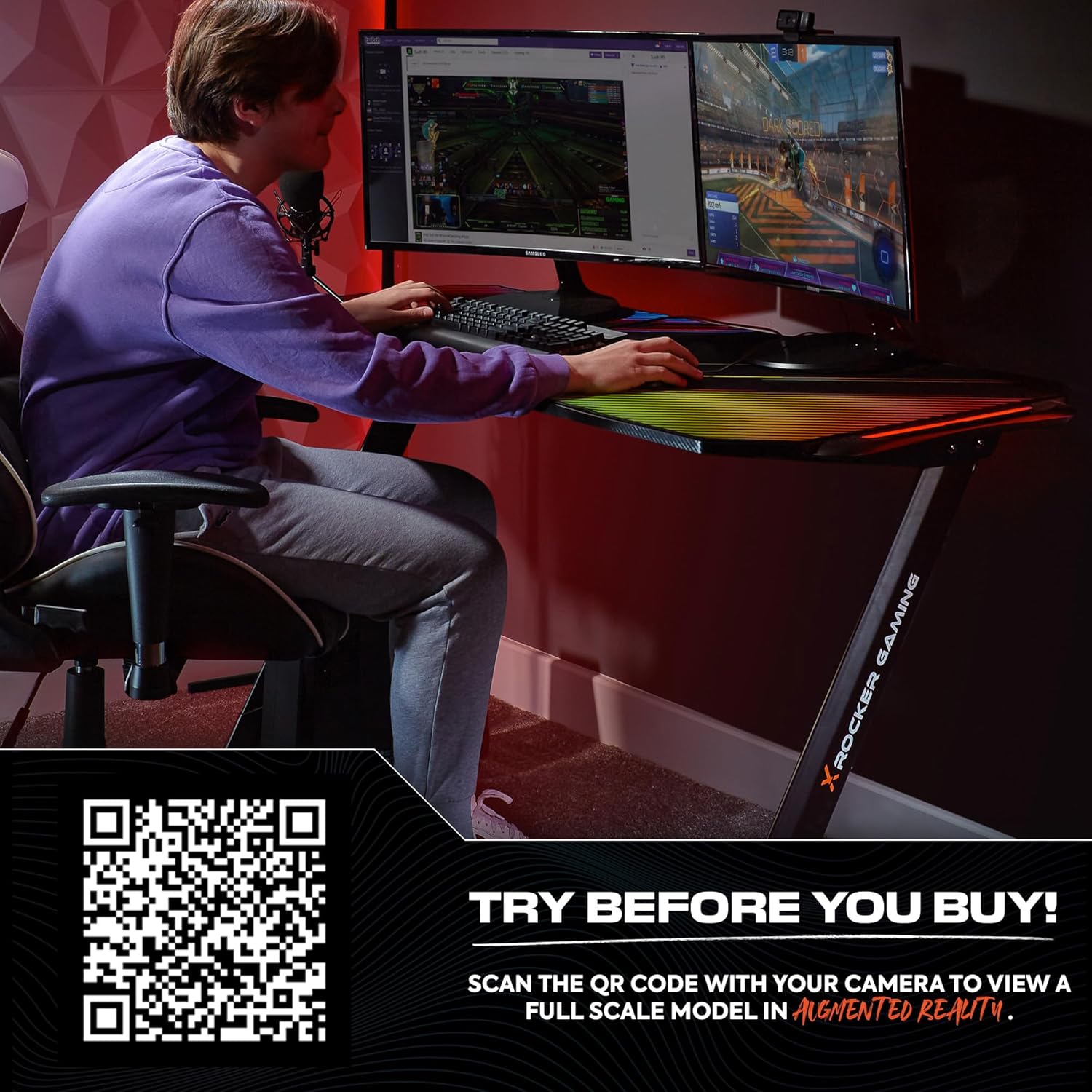 FREE MOUSEPAD + HEADPHONE HOOK INCLUDED – Each of these desks come with a free X Rocker desk-scale extra large mouse mat included in a smooth glide fibre material with unique gaming inspired RGB printed design. For a stress-free gaming experience. Easy to assemble. Overall Dimensions: W150 x D60 x H75cm