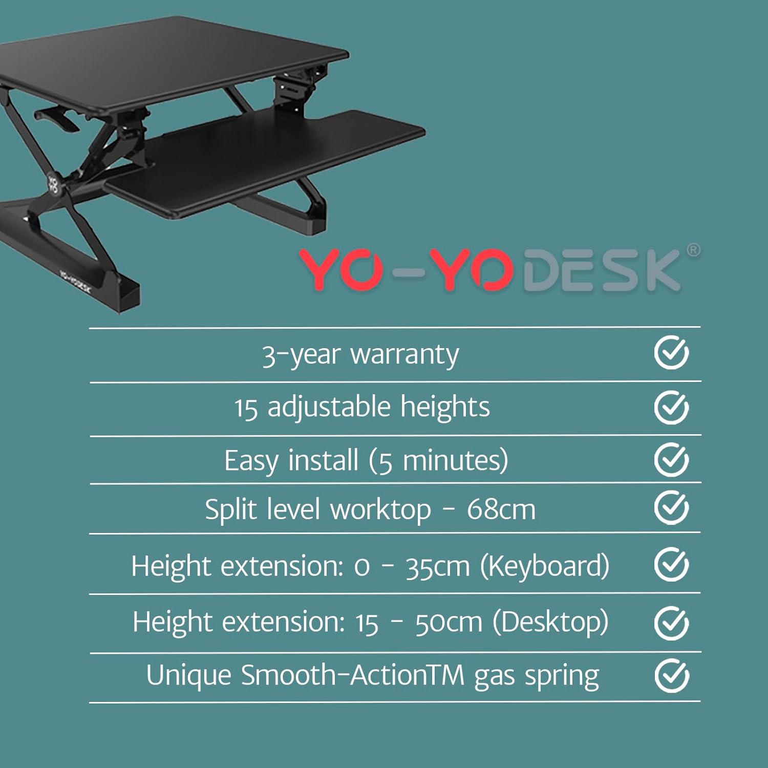 IMPROVE YOUR HEALTH & PRODUCTIVITY: Avoid binge sitting and transition easily between sitting and standing using our innovative sit to stand desk. Allow your body the movement it needs whilst you work in perfect ergonomic comfort. Join the workplace revolution for healthier active working! Yo-Yo DESK height adjustable standing desk is an Official Sponsor of the GET BRITAIN STANDING campaign.